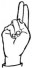 На ћирилици написано СНЕЖАНА ШЋЕЛОВИЋ састоји се из 15 слова [?]. Исписано ћириличном једноручном азбуком за глувонеме: